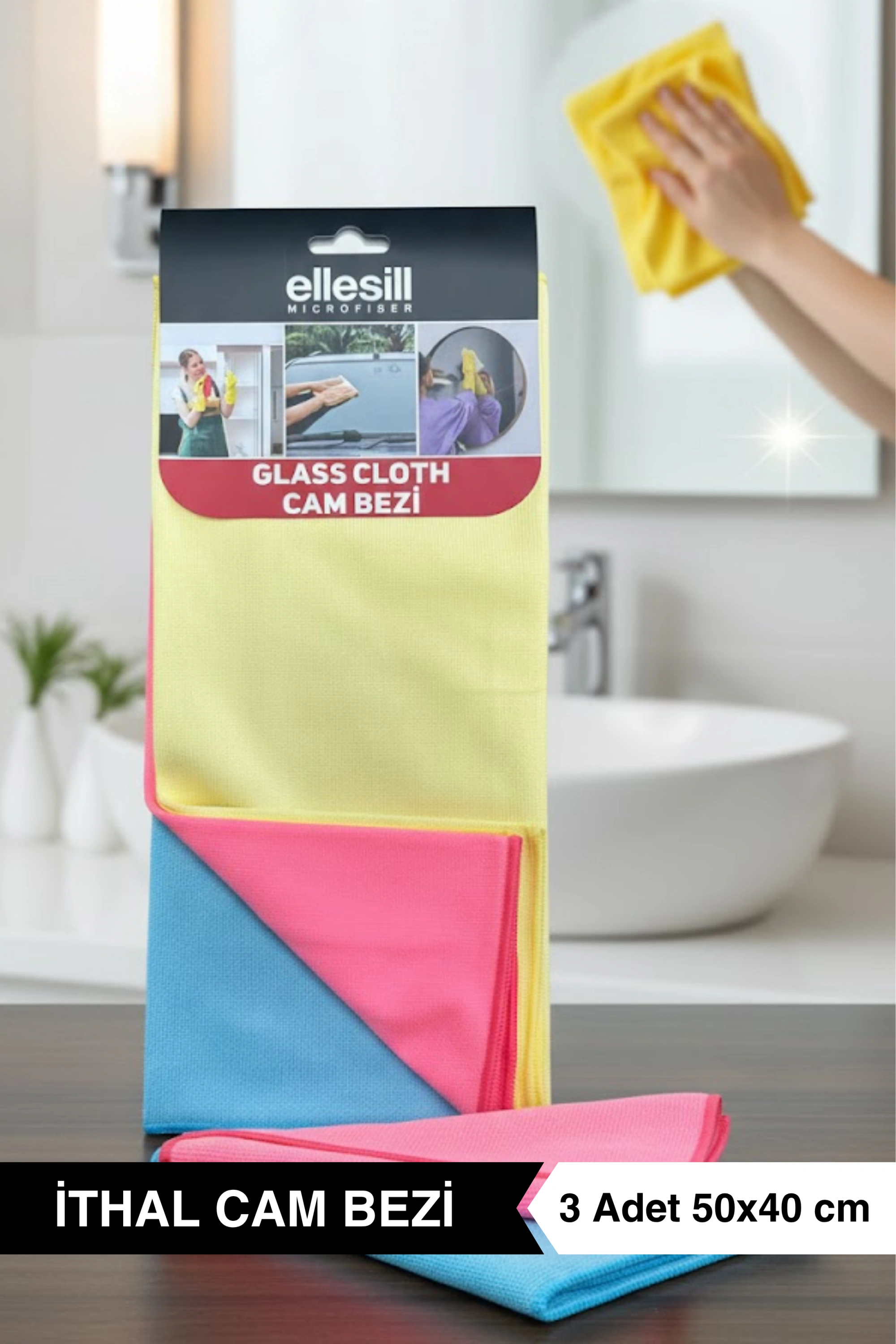 İthal 3'lü Mikrofiber Cam Bezi, Temizlik Bezi, Kurulama Bezi 50x40cm